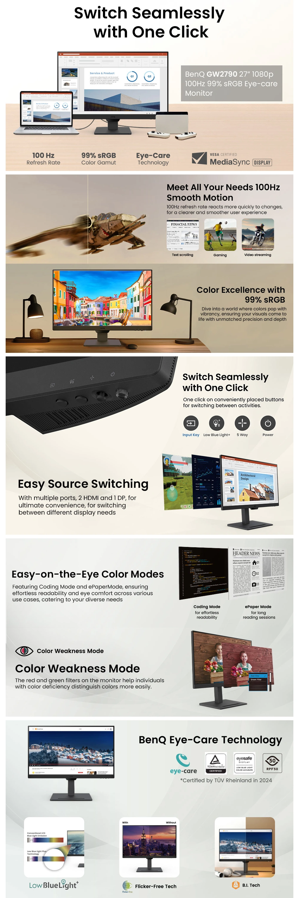 | EYECARE: | Less Blue Light, Anti-Flicker, TÜV Rheinland Certified |