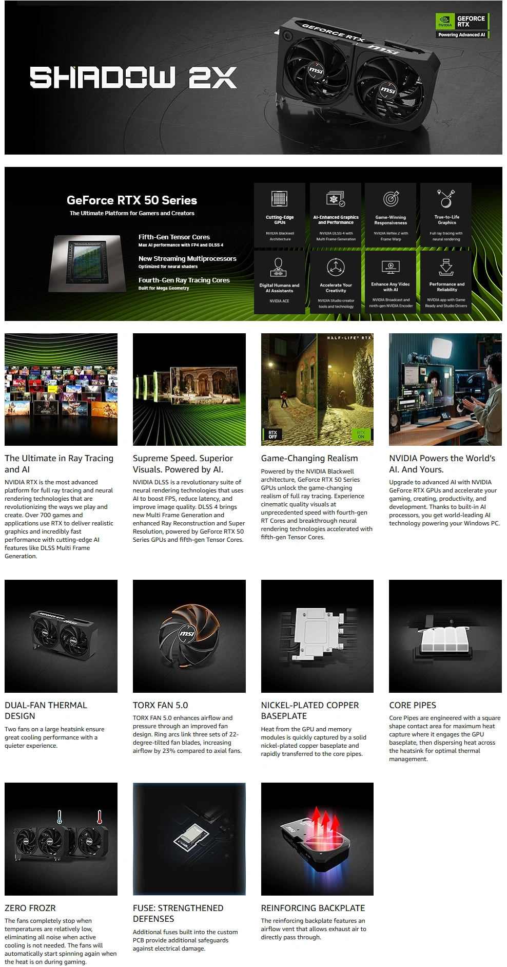 | COOLING SYSTEM | MSI’s Triple FAN Thermal Design 2x TORX FAN 5.0 Niickel-plated Copper Baseplate Zero Frozr |