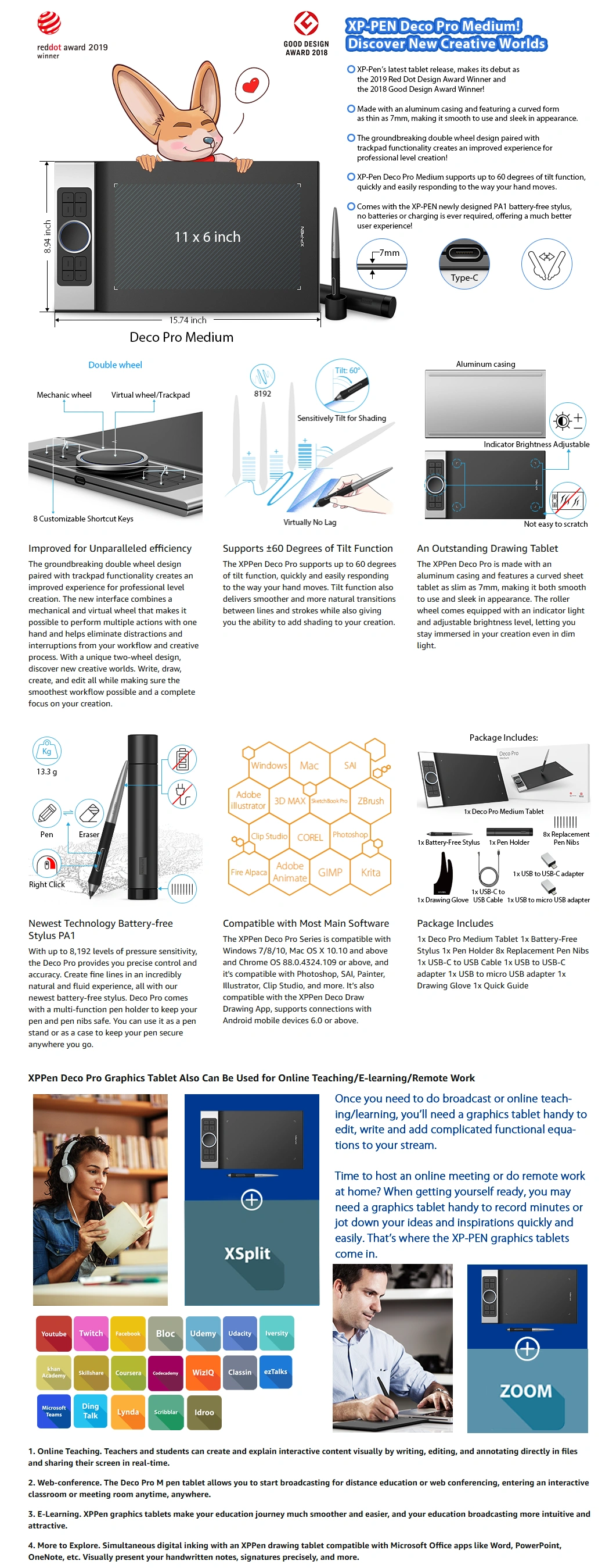 • Pen Pressure Sensitivity: 8192 levels, 60° tilt support